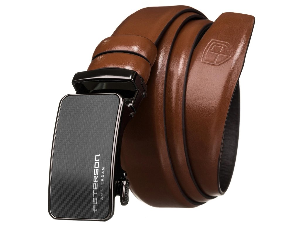 Pánský kožený pásek Peterson® – hnědý s automatickou přezkou