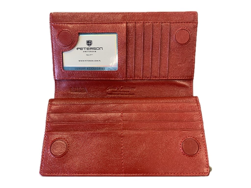 Zářivě červená peněženka v moderním vertikálním provedení potěší každou ženu, která má ráda pořádek, funkčnost a špetku luxusu. Vyrobena z pravé a ekologické kůže, kombinuje dlouhou životnost s příjemným vzhledem i dotykem.